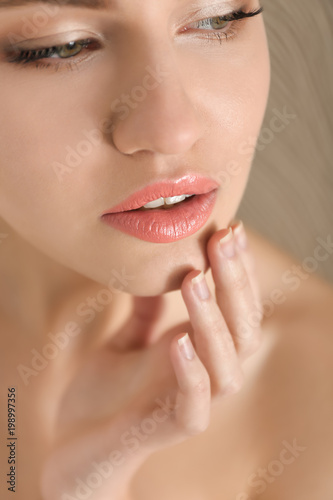 © Africa Studio, Obraz premium Young woman applying cream onto her skin, closeup