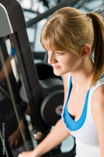 © CandyBox Images, Obraz premium Young woman at fitness center exercise machine