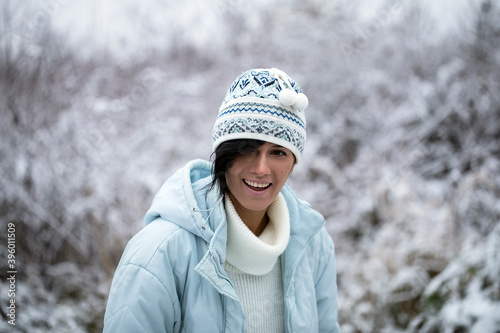 © Erika, Obraz premium Young woman at winter. Woman snow. Background.