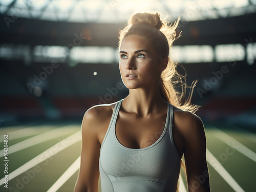 Fototapeta premium Young woman athlete in sportswear training at the stadium