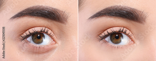 Obraz premium Young woman before and after cosmetic surgery operation, closeup