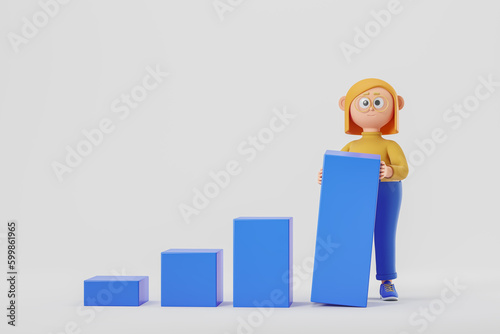 © ImageFlow, Naklejka premium Young woman building growing graph