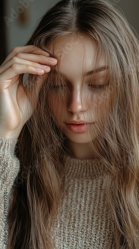 © kardaska, Obraz premium Young woman checking her hair part for signs of hair loss