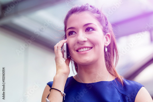 © Sergey Nivens, Fototapeta premium Young woman commuting on bicycle