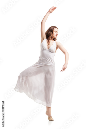 © julenochek, Naklejka premium Young woman dancing in dress over white