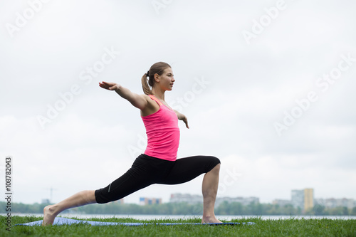 © antgor, Fototapeta premium Young woman doing stretching exercises at open air