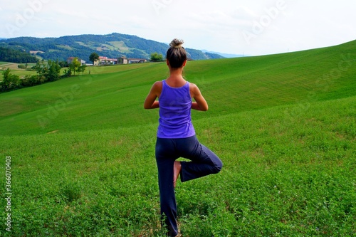 Obraz premium young woman doing yoga in the field