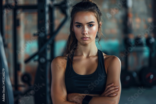 © Alina, Fototapeta premium Young woman dressed in sports uniform, posing in the gym center