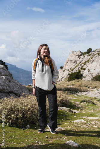 © Martí Rosselló, Naklejka premium Young woman enjoying hiking on mountain trail