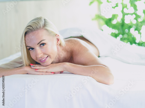 © lenets_tan, Obraz premium Young woman enjoying massage in spa salon