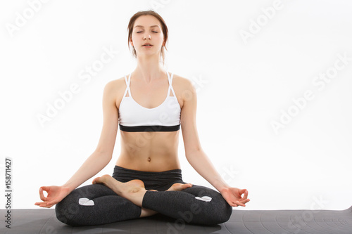 Fototapeta premium Young woman exercise yoga supported headstand