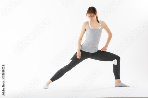 © snedorez, Obraz premium Young woman exercise yoga supported headstand
