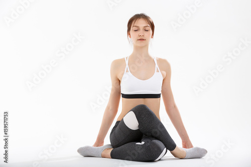 Fototapeta premium Young woman exercise yoga supported headstand