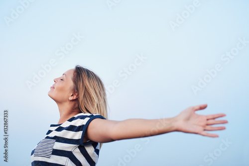 Fototapeta premium Young woman feeling free under a blue sky