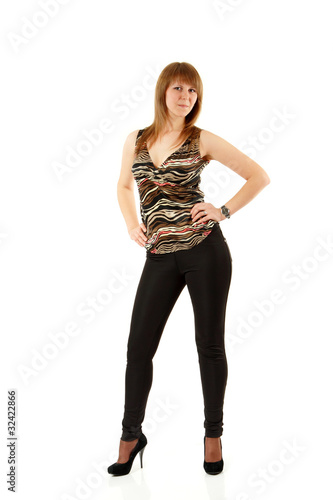 © Khorzhevska, Fototapeta premium young woman full length isolated on white