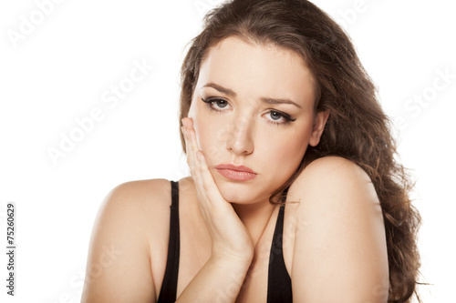 Fototapeta premium young woman has a severe toothache