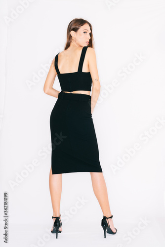 © w10, Fototapeta premium young woman in a dress, isolated on white.