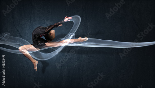 © Sergey Nivens, Naklejka premium Young woman in gymnast suit posing