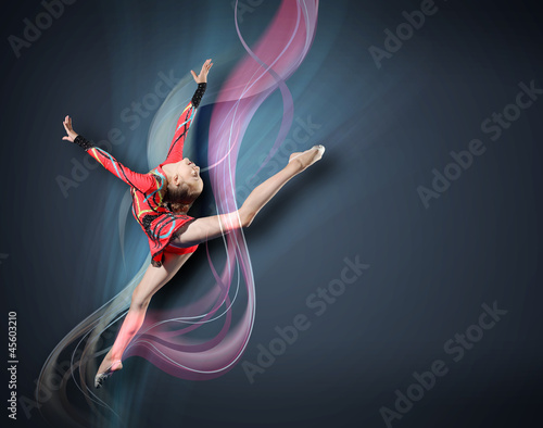 © Sergey Nivens, Obraz premium Young woman in gymnast suit posing