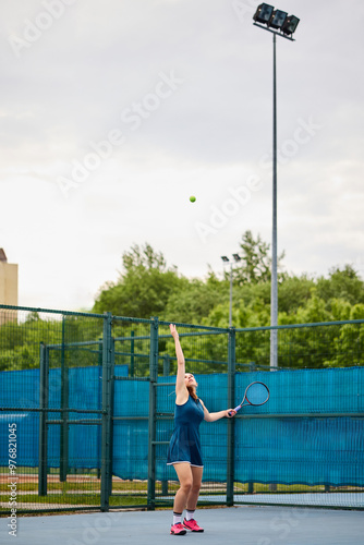 © makedonski2015, Fototapeta premium Young woman in motion on the tennis court