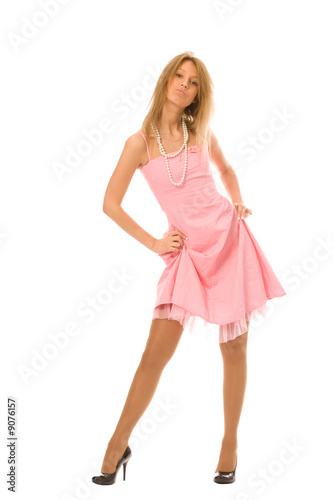 © Valentin Mosichev, Naklejka premium young woman in pink dress on a white background