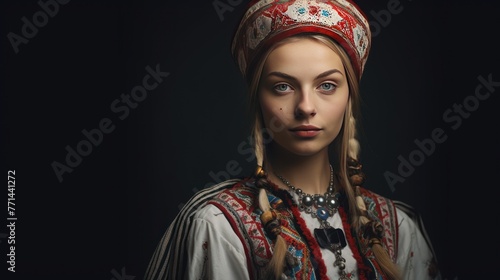© Zie, Fototapeta premium Young woman in popular vintage traditional Romanian costume,