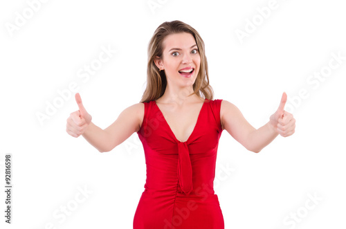 © Elnur, Fototapeta premium Young woman in red dress isolated on white