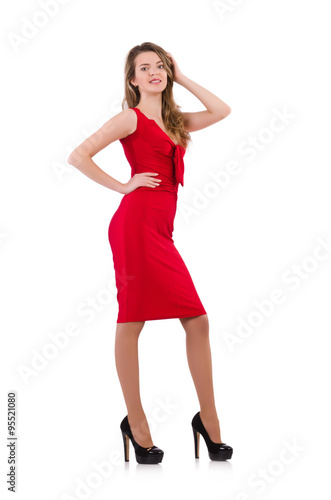 © Elnur, Fototapeta premium Young woman in red dress isolated on white