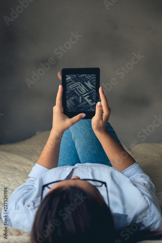 Naklejka premium Young woman looking ebook