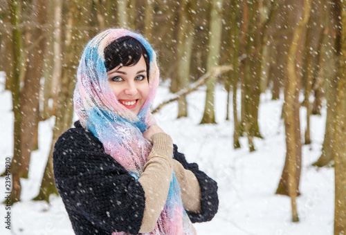 © Radnatt, Obraz premium young woman on a walk in the winter park
