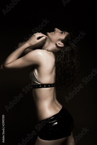 © Raisa Kanareva, Fototapeta premium young woman on black background