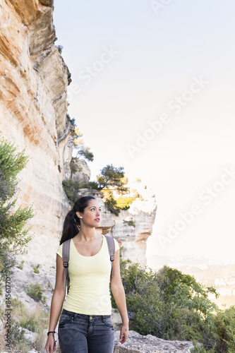 © photopitu, Naklejka premium young woman on top of a mountain with good views