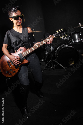 © Elnur, Fototapeta premium Young woman playing guitar during the concert