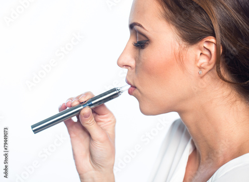 Fototapeta premium Young woman portrait with e-cigarette