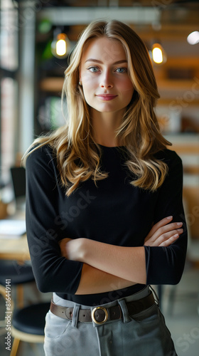 © Nelson, Fototapeta premium Young Woman Posing for Photo in Restaurant