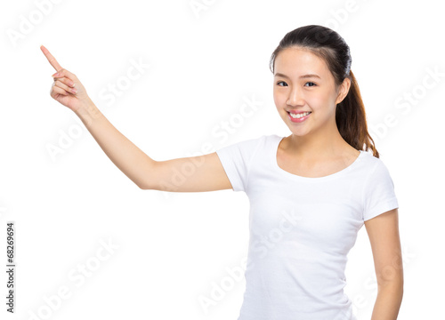 Fototapeta premium Young woman present finger up