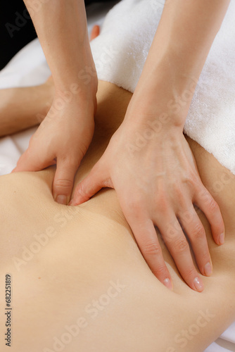 © Victoria, Fototapeta premium Young woman receiving a back massage in a spa center.