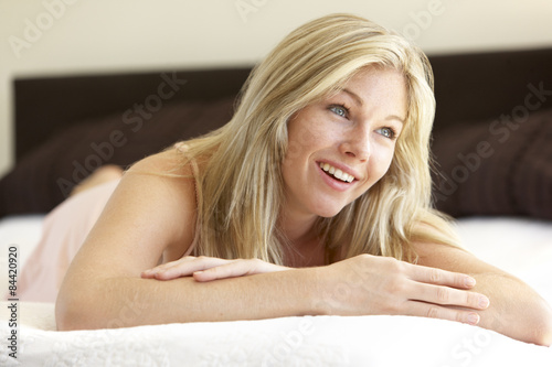 Fototapeta premium Young Woman Relaxing On Bed