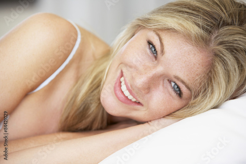 Fototapeta premium Young Woman Relaxing On Bed