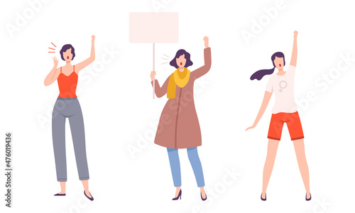 © topvectors, Obraz premium Young Woman Showing Placard Protesting with Banner for Feminine Empowerment Vector Set