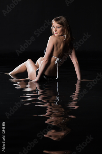 © Dmitriy Melnikov, Fototapeta premium Young woman sits in water.