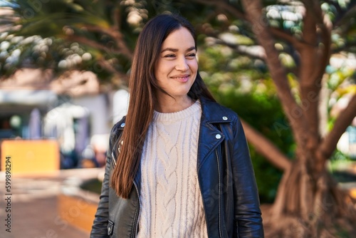 Fototapeta premium Young woman smiling confident standing at park