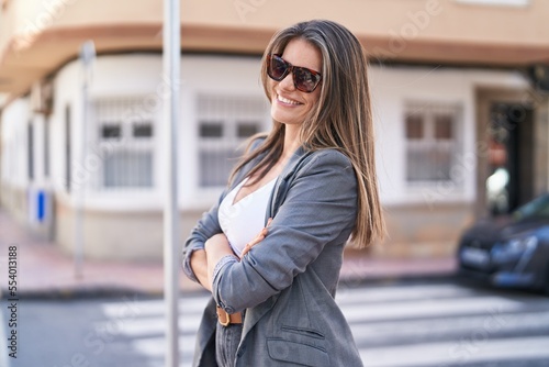 © Krakenimages.com, Fototapeta premium Young woman smiling confident standing with arms crossed gesture at street