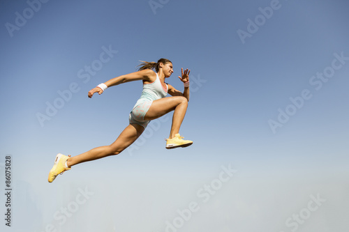 Fototapeta premium Young woman taking long jump
