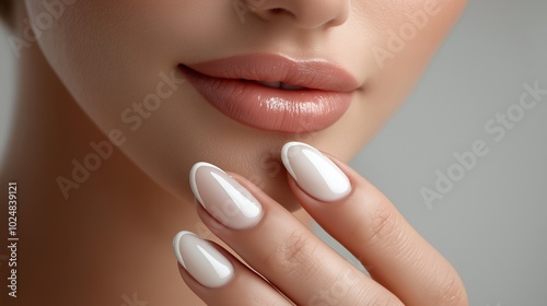© mirifadapt, Obraz premium Young woman touching her face isolated