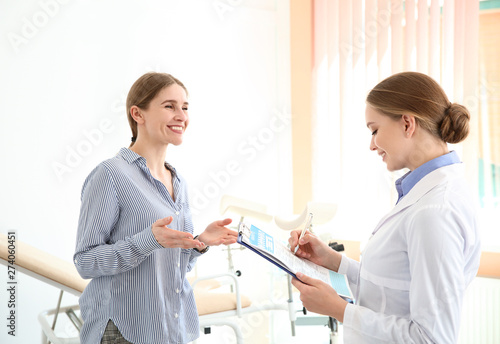 Fototapeta premium Young woman visiting her gynecologist in clinic
