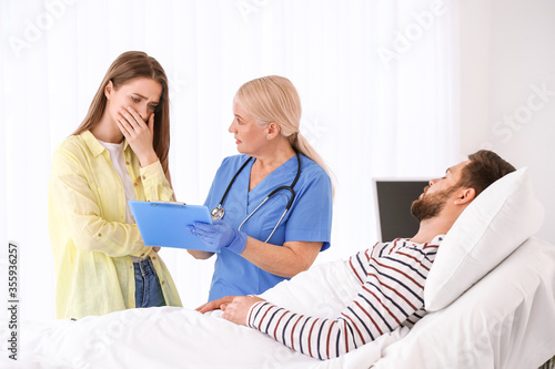 © Pixel-Shot, Obraz premium Young woman visiting her husband in hospital