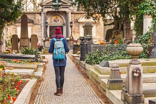 © EdNurg, Fototapeta premium young woman walking at the Vysehrad cemetery in Prague