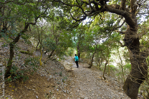 © Stéphane Bidouze, Fototapeta premium Young woman walking in forest