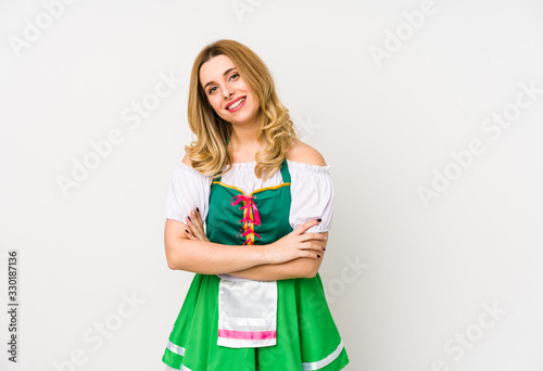 © Asier, Fototapeta premium Young woman wearing a saint patricks day clothes isolated laughing and having fun.